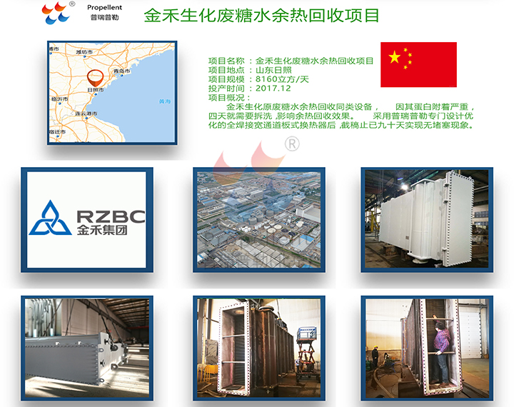 金禾生化原廢糖水余熱回收同類設備,因其蛋白附著嚴重,四天就需要拆洗,影響余熱回收效果。采用北京普瑞普勒專門設計優(yōu)化的全焊接寬通道板式換熱器后,截稿止已九十天實現(xiàn)無堵塞現(xiàn)象。