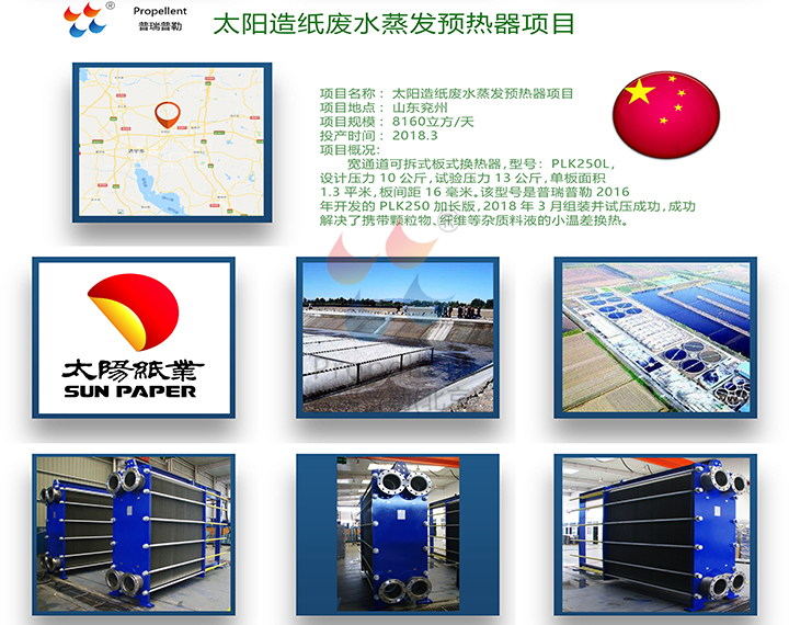 寬通道可拆式板式換熱器,型號PLK250L,設計壓力10公斤,試驗壓力13公斤,單板面積:1.3平米,板間距16mm。該型號是北京普瑞普勒2016年開發的PLK250加長版,2018年3月組裝并試壓成功,成功解決了攜帶顆粒物、纖維等雜質料液的小溫差換熱。