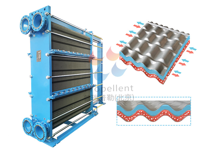 寬流道板式換熱器板型采用獨特的粗波紋、寬間隙通道結(jié)構(gòu)設(shè)計,板間無觸點,通過性好,介質(zhì)可以無限制地流過板片的換熱表面而不發(fā)生堵塞、滯留現(xiàn)象,有效防止固體顆粒物、懸浮物、纖維及粘稠物質(zhì)的沉積、堵塞;